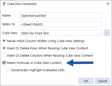 Retain Formulas in Cube View Content links to other Excel worksheets or worksheets in other Excel workbooks.