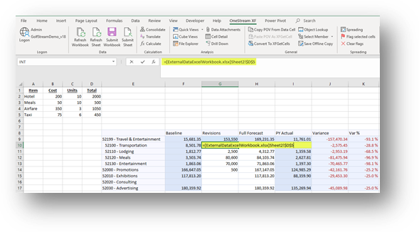 NOTE: When using external Excel workbooks, or after any updates to referenced sheets within the same workbook, you must Refresh Sheet to visualize the dirty cells and then Submit Sheet, unless you’ve turned on Dynamically Highlight Evaluated Cells in the cube view.