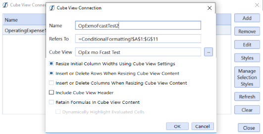 Retain Formulas in Cube View Content allows you to form Cube View grids of data in Excel, using the Cube Views menu function, that can be linked to other Excel models for easy submission into OneStream. This feature allows formulas (to writeable cells) in Excel (or Spreadsheet) for an attached Cube View to be retained on submission and retrieval instead of being replaced with the value of the represented formula.
