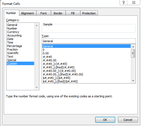 Finally, under Type, enter the custom formatting. This example will be formatting for Millions. (#,,)