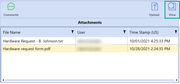 The attachment displays in the attachments list. Once in the list, you can view the attachment from The Ticket Details pane by selecting the attachment and clicking View.