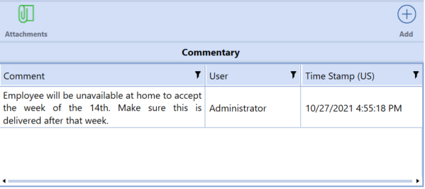 Comments also show the user who submitted the comment, as well as the Time Stamp when the comment was entered.