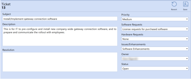 Any information supplied by the Ticket Owner to describe how the ticket is resolved. Entering a resolution is not required to move a support ticket to a Closed status.