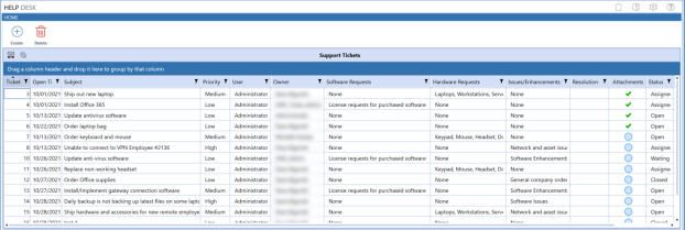 Indicates whether a support ticket includes attachments. A green check in this column indicated an attachment exists on the ticket. See Attach Supporting Documents to a Ticket.