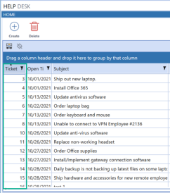Ticket numbers display in the leftmost column on the Support Tickets grid by default.